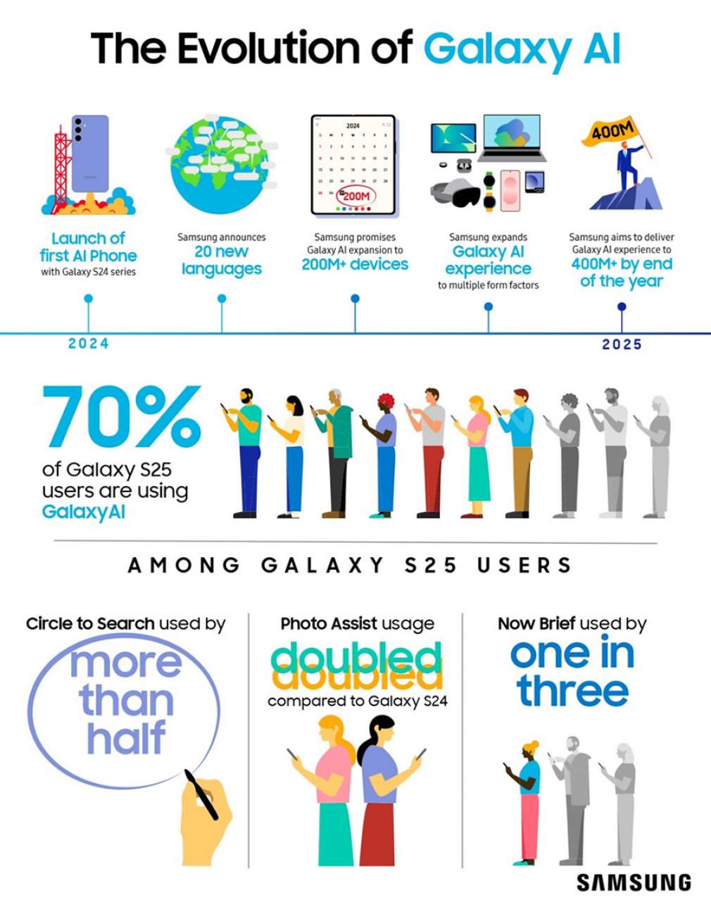 Conforme os consumidores passam a usar cada vez mais a AI para tarefas do dia a dia, a Samsung anuncia, no Galaxy AI Forum 2025, o compromisso de expandir o Galaxy AI para mais de 400 milhões de dispositivos até o final de 2025