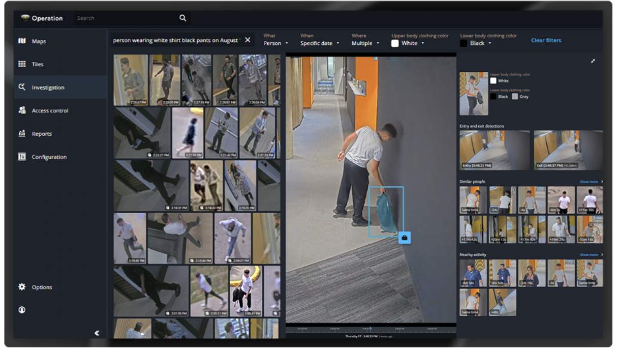Novos recursos de investigação utilizando automação inteligente permitem que os operadores localizem rapidamente evidências em vídeo, entendam o contexto e encerrem casos em minutos.