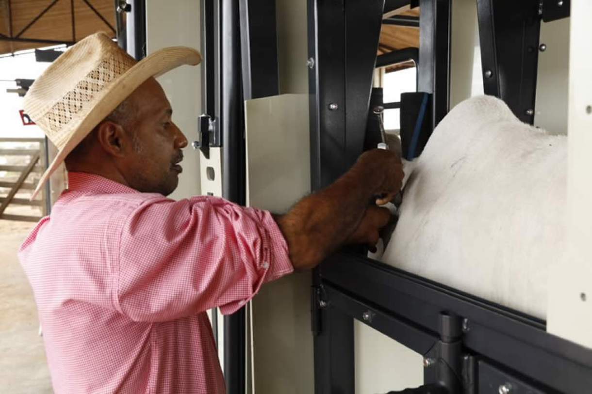 7) A equipe de trabalho deve estar bem posicionada: uma pessoa cuida da porteira de entrada e da contenção do posterior do animal (quando necessário) e outra cuida da porteira de saída e da pescoceira. Com o animal contido, um deles realiza a aplicação da vacina. Com isso, há diminuição do risco de acidentes e menor desgaste dos vaqueiros.