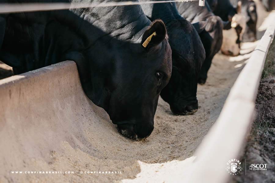 A água é outra prioridade do confinamento. “Era utilizada a água de um riacho da região, porém, foi feita uma análise do fluído e percebeu-se a existência de coliformes fecais. Para resolver a questão, o pessoal está investindo em poços semiartesianos”, conta Raphael Poiani, zootecnista e analista de mercado da Scot Consultoria. Com isso, a propriedade espera oferecer uma água com melhor qualidade aos animais, impactando positivamente na saúde e no ganho de peso dos bovinos.
