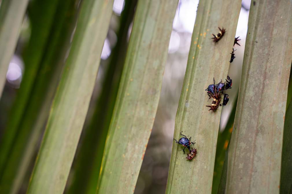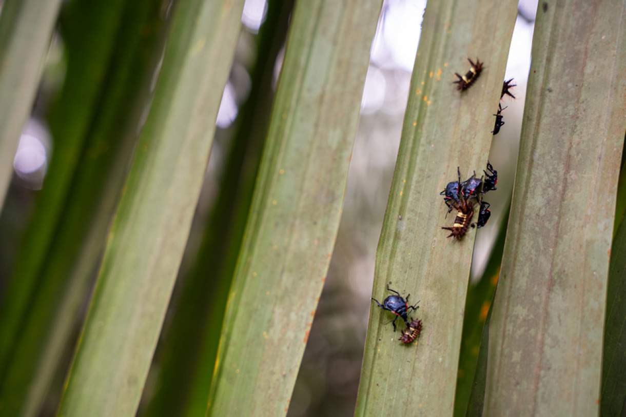 A Agropalma mantém em um laboratório próprio a criação de uma espécie nativa de percevejo que é predadora natural da lagarta-desfolhadora – uma das pragas mais comuns das plantações de palma. Nesse ambiente controlado, a empresa desenvolve esse tipo de inseto, acostumando-o desde o início a se alimentar das suas presas. Quando atinge a fase adulta, ele é liberado na plantação para executar o manejo de pragas de forma natural - processo que acontece trimestralmente para não comprometer o equilíbrio do ecossistema local. Como resultado, a equipe agrícola da companhia tem notado uma menor incidência de lagartas e besouros que são nocivos às plantações nas fazendas onde os percevejos foram introduzidos.