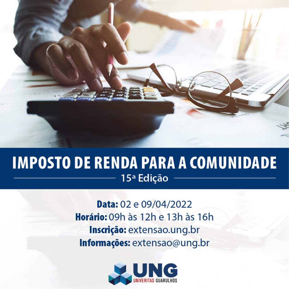 Os contribuintes que ainda não fizeram a declaração do Imposto de Renda podem participar, nos dias 02 e 09 de abril, de um mutirão realizado pelas Universidades UNG e UNIVERITAS/UNG. A ação social gratuita acontecerá das 09h às 12h e das 13h às 16h, nos campi Centro e Bonsucesso, e das 09h às 13h, em Itaquaquecetuba.