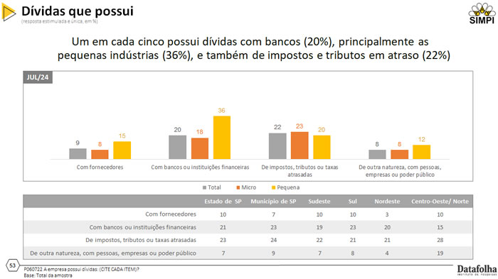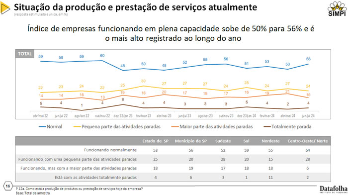 Pesquisa realizada pelo SIMPI/Datafolha, o Indicador Nacional de Atividade da Micro e Pequena Indústria, mostra a situação real da categoria. A coleta de dados ocorreu entre os dias 15 e 31 de julho de 2024, foram realizadas 712 entrevistas.