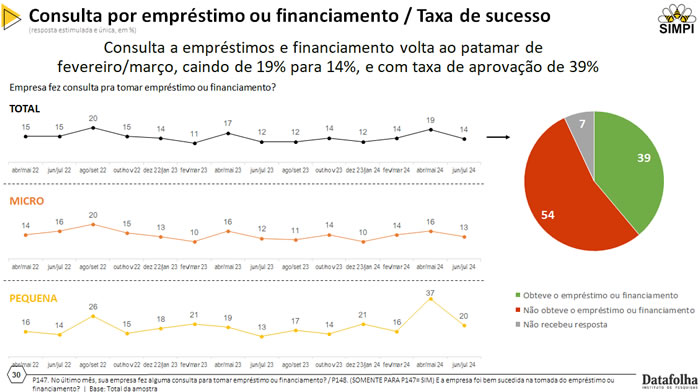 A 14ª Pesquisa Indicador Nacional de Atividade da Micro e Pequena Indústria do SIMPI/Datafolha revela uma visão abrangente do panorama econômico durante o mês de junho/julho. Nesta edição, a pesquisa mostra a relação entre a falta de acesso a capital de giro e empréstimo com o número de Micro e Pequenas Indústrias em atraso no pagamento.
