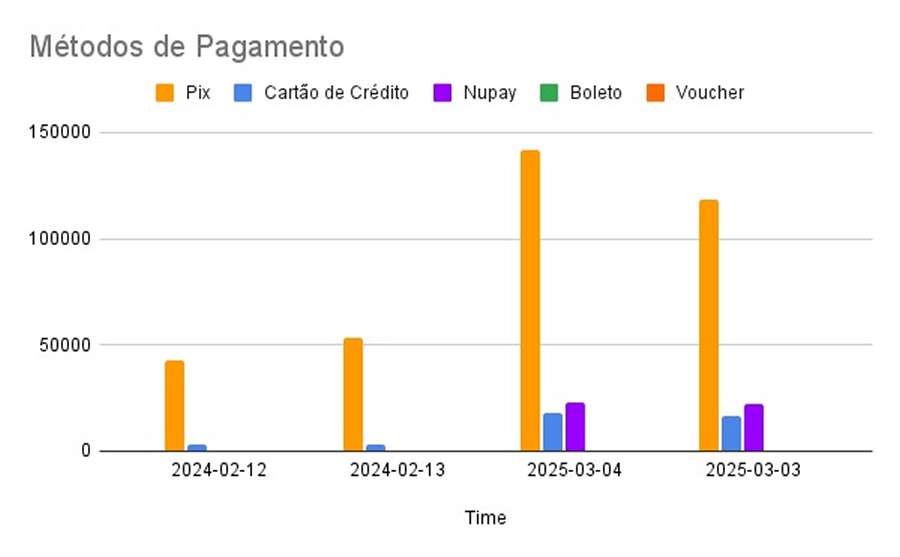 Segundo Alex Tabor, CEO da Tuna, isso se deve a diversidade de opções de pagamento de um ano para o outro. "Esse movimento reflete como a diversificação dos meios de pagamento está criando uma experiência mais fluida para os consumidores. É positivo, porque, agora, as pessoas podem escolher a opção mais conveniente para cada situação, sem depender de um único método", afirma. O executivo ainda ressalta que apesar da queda relativa no uso do PIX, o TPV (Total Payment Volume) da Tuna de todo o Carnaval 2025 (de sexta, 28/2, a terça, 4/3) foi de quase R$ 106, 5 milhões, um aumento de cerca de 328% em relação a 2024 (R$ 24,8 milhões) e mais de 2.000% na comparação com 2023 (R$ 4,9 milhões).