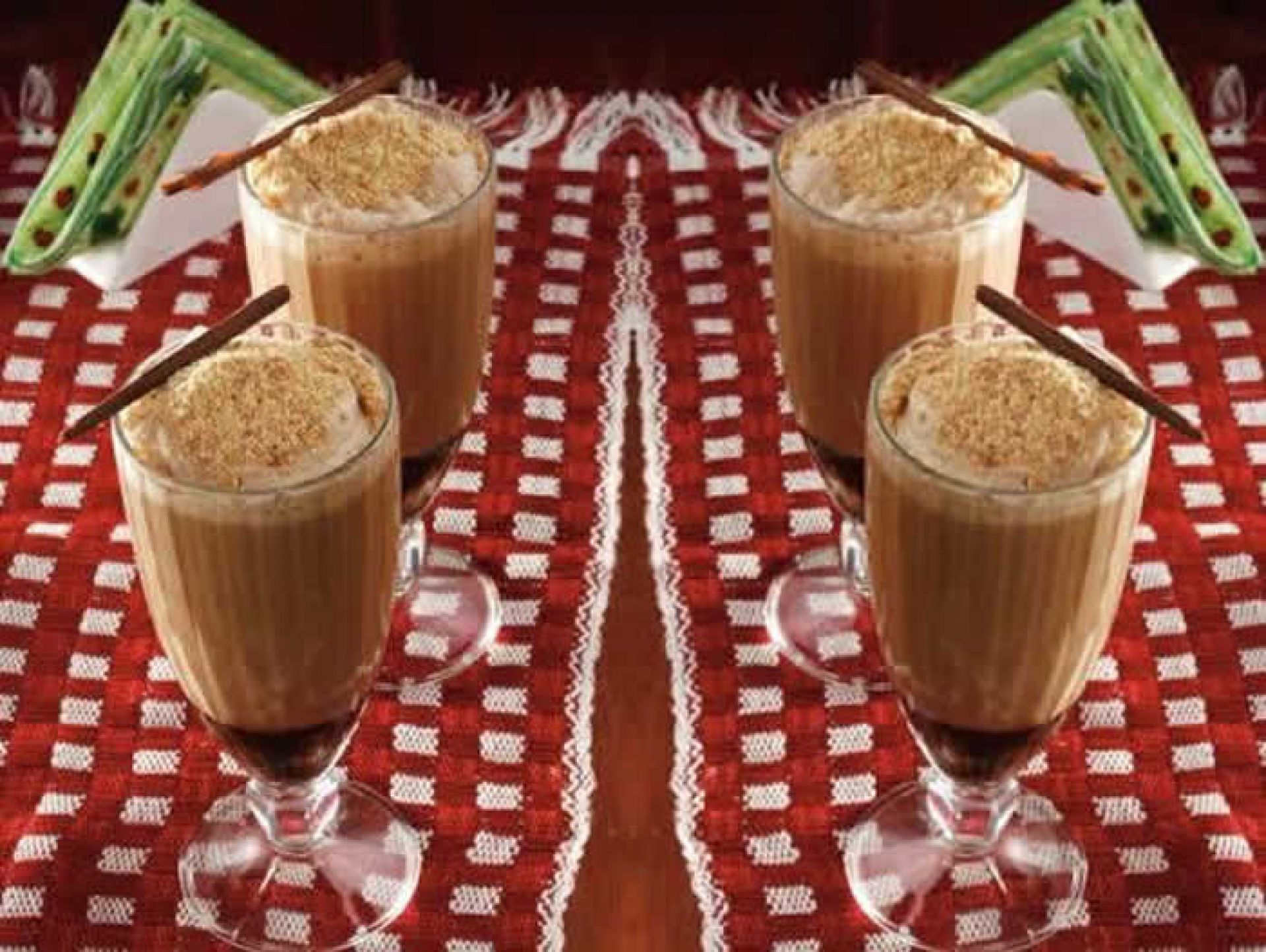 Distribua a cobertura de chocolate em quatro copos altos. Reserve.