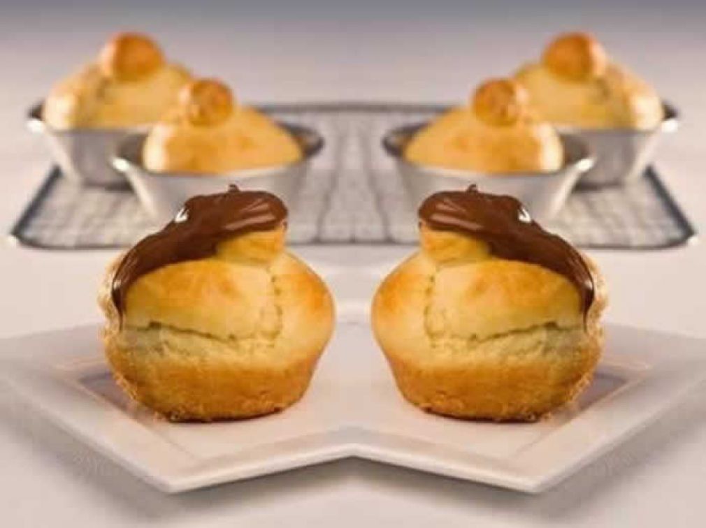Brioche com recheio de Geléia de Damascos e Nozes, coberto com creme de avelã