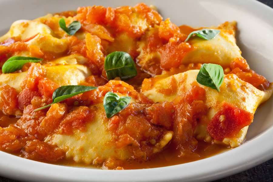 Ravióli de Burrata Levitare com molho de tomates frescos e manjericão é destaque em cardápio