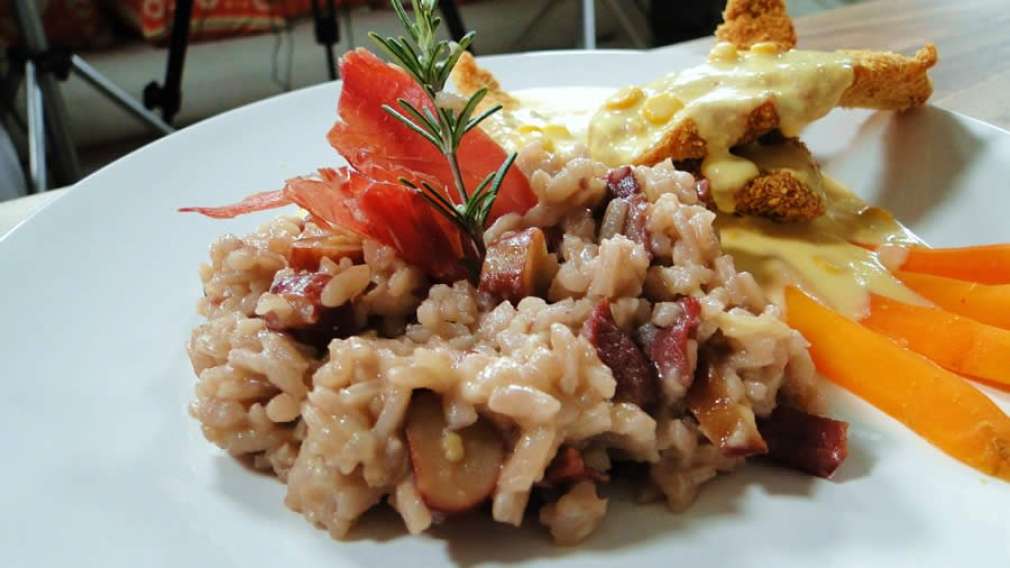 ¾ xícara (chá) de pinhão cozido, descascado e cortado em pedaços (120 g)