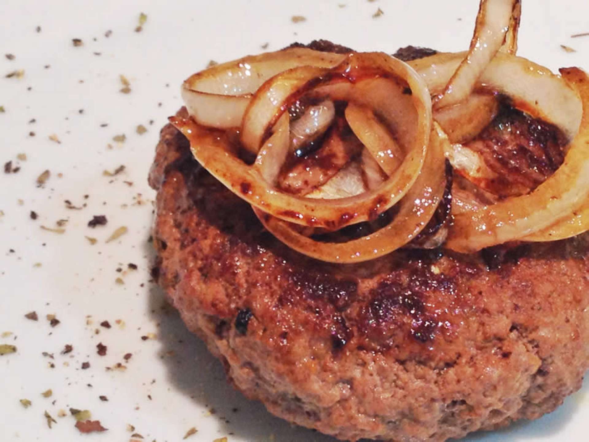 Comece misturando os temperos à carne e cortando o queijo em fatias não muito grossas, retirando a casca. Em seguida, com as mãos, forme o hambúrguer e recheie com uma fatia de queijo provolone Regina. Com a outra mão, vamos separar mais um pouco de carne moída para fechar o hambúrguer, selando bem os cantinhos, com a ponta dos dedos, para o queijo não sair na hora de fritar. Agora, coloque um pouquinho de manteiga Regina na frigideira e frite o hambúrguer. Quando estiver dourado, é hora de vira-lo: Prontinho! Se quiser, sirva com cebolas caramelizadas. Para fazê-las, coloque algumas fatias de cebola na frigideira que usou para fazer o hambúrguer. Quando estiverem douradas, acrescente uma colher de sopa de açúcar e deixe no fogo até caramelizarem.