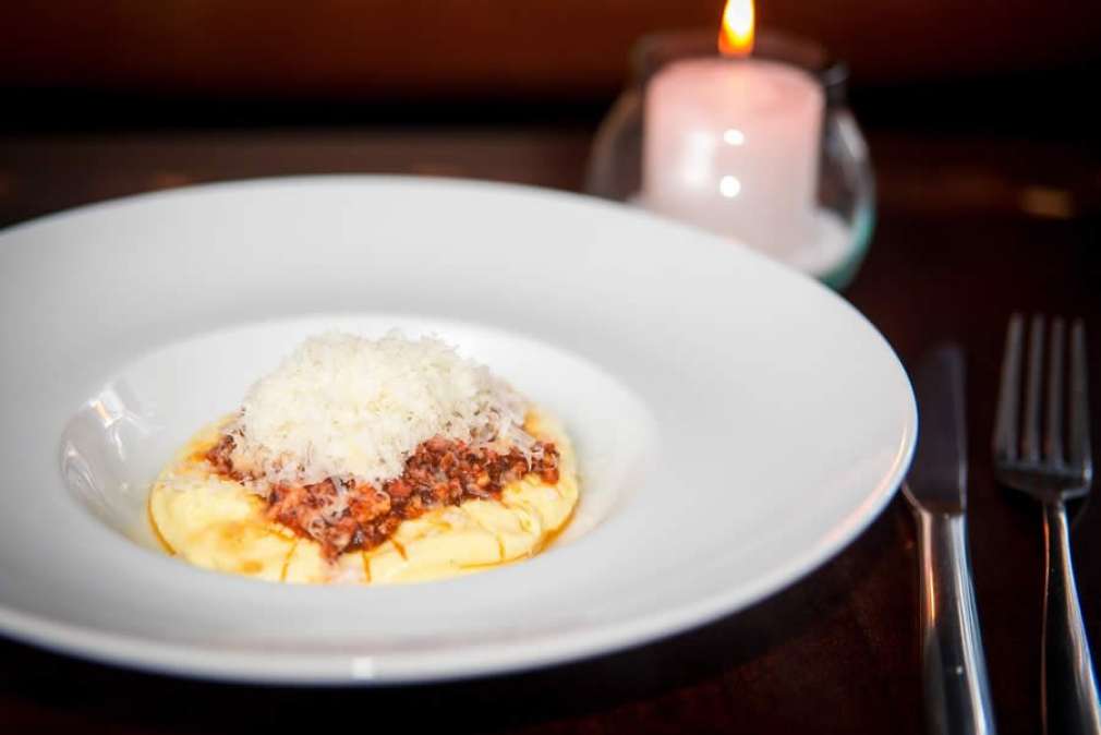 Modo de servir: Sirva a polenta coberta com o ragu e bastante queijo grana padano.
