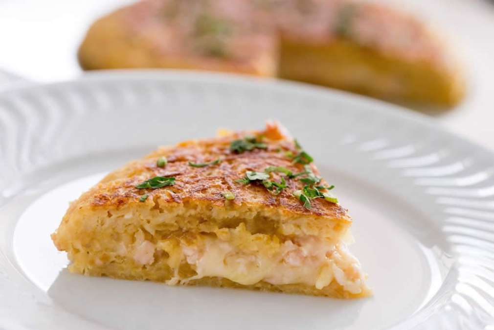 Leve ao fogo baixo e com a frigideira tampada. Doure de um lado, vire com cuidado e doure o outro.