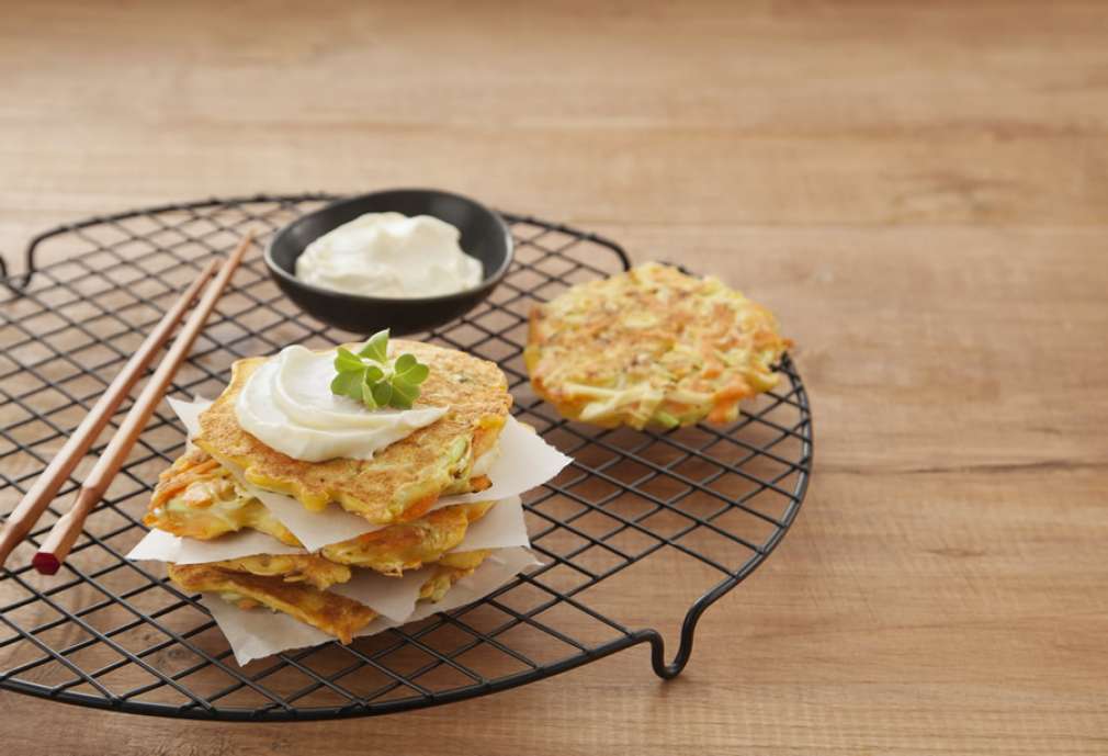 - Em um recipiente, misture a farinha, a cenoura, o repolho, a água, os ovos, o requeijão e o sal;