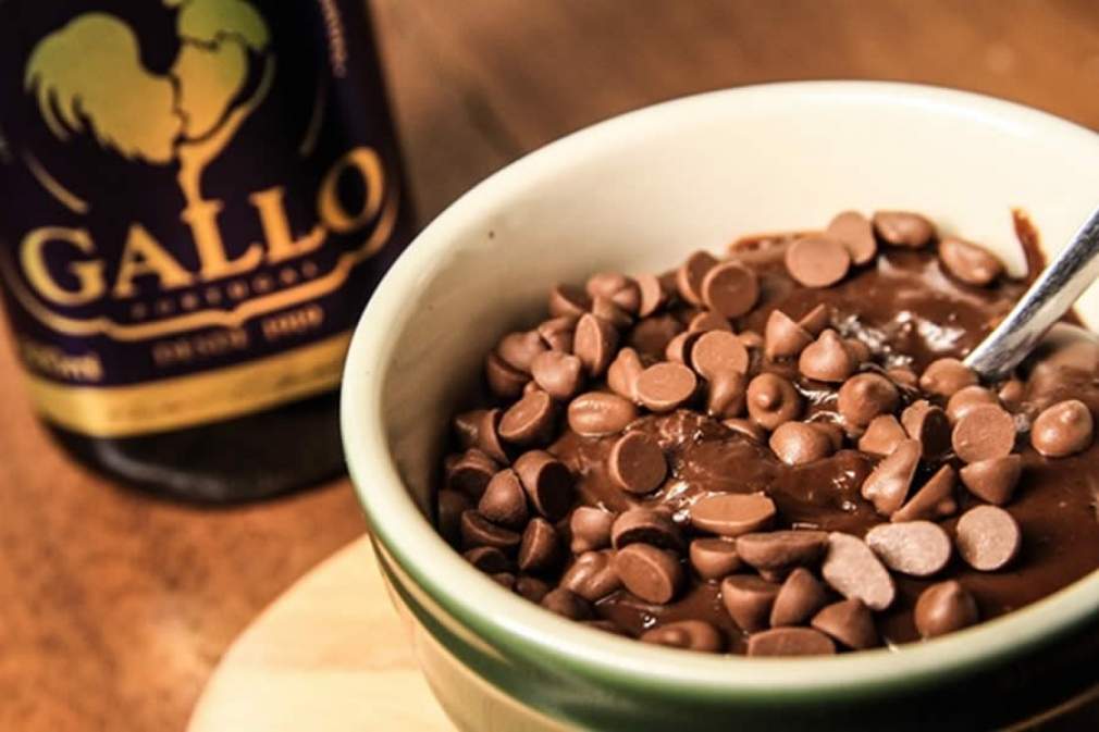 Após misturar bem, acrescente duas colheres de Azeite Gallo Reserva e mexa continuamente até que os ingredientes desgrudem da panela. Acrescente chocolate picado. Reserve.