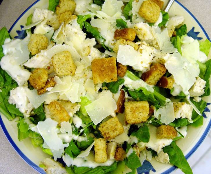 Tradicional salada Caesar pode ser servida acompanha de picanha suína