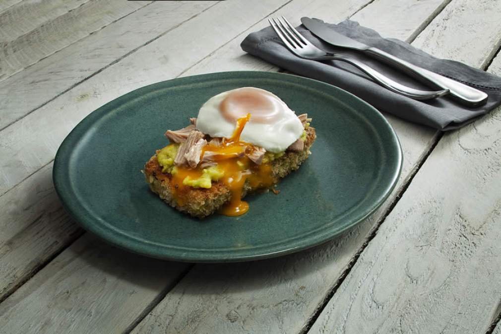 Distribua sobre as fatias de abobrinha, uma porção de avocado, o Atum Sólido em óleo COQUEIRO escorrido e por último o ovo.
