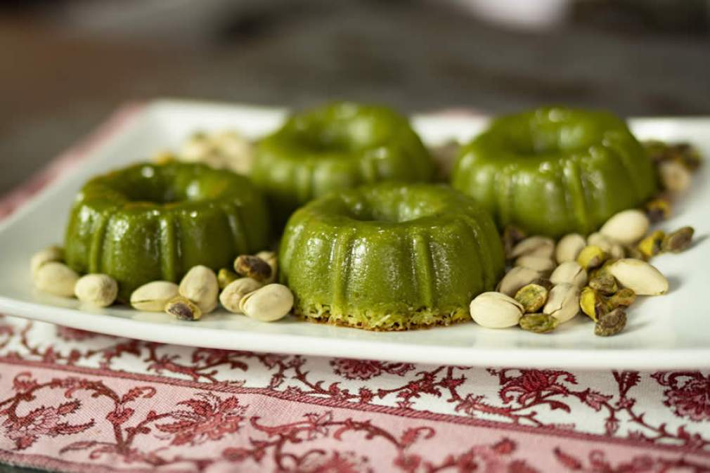 Coloque em uma vasilha a gema, açúcar, leite, margarina derretida e a pasta de pistache, misture até ficar homogêneo. Acrescente o coco e o pistache triturado, mexa até ficar homogêneo.