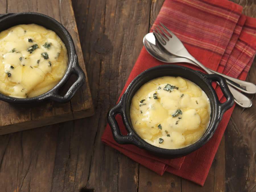 - Em refratários individuais, monte camadas de polenta e queijo Gorgonzola Tirolez picados em pequenos pedaços deixando o refratário escolhido com a última camada de queijo. Feito isso, leve ao forno preaquecido por 10 minutos apenas para que o queijo derreta e incorpore melhor à polenta.