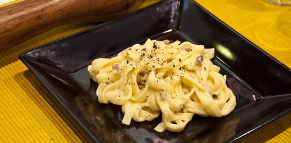 - Aqueça a manteiga e frite bem o bacon, coloque as cebolas fatiadas e refogue até que fiquem bem macias. Acrescente a farinha de trigo e logo em seguida coloque o leite aos poucos, mexendo sem parar para não empelotar o creme.
