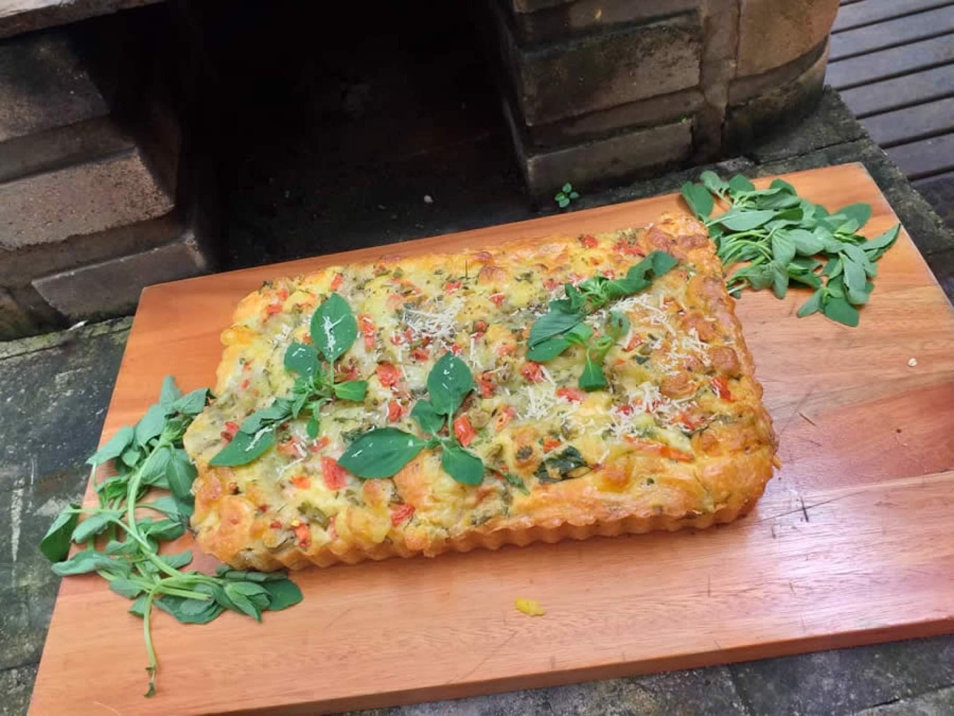 Outra sugestão deliciosa é o Bolo de Queijo com Espinafre que tem uma massa colorida com as folhas da verdura. Já, para os fanáticos por pizza, aqui ela ganha uma versão mais fofinha no Bolo Marguerita que leva folhas de manjericão.