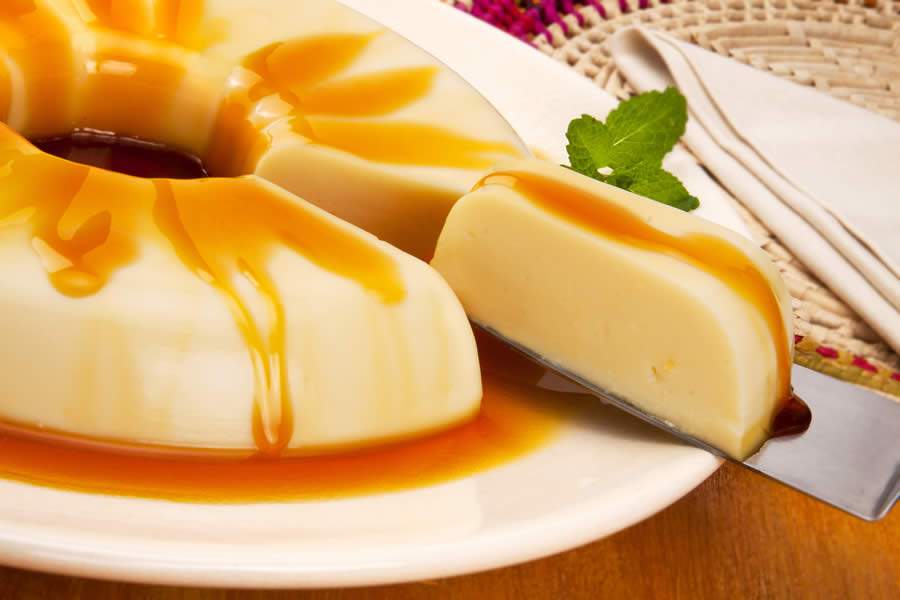 - Coloque na forma e leve ao forno, em banho-maria, por 30 minutos. Deixe esfriar, desenforme e leve à geladeira.