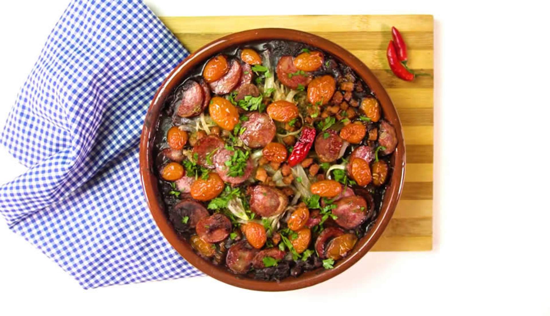 Os feijões assados, por exemplo, são fáceis de cozinhar e rendem ótimas porções para um almoço em família. Na receita de hoje utilizaremos o feijão preto Saboroso, da Ruston Alimentos, além de bacon, linguiça calabresa e tomates-cereja, mas o legal desse prato é que você pode aproveitar quaisquer outras “sobras” guardadas na geladeira.