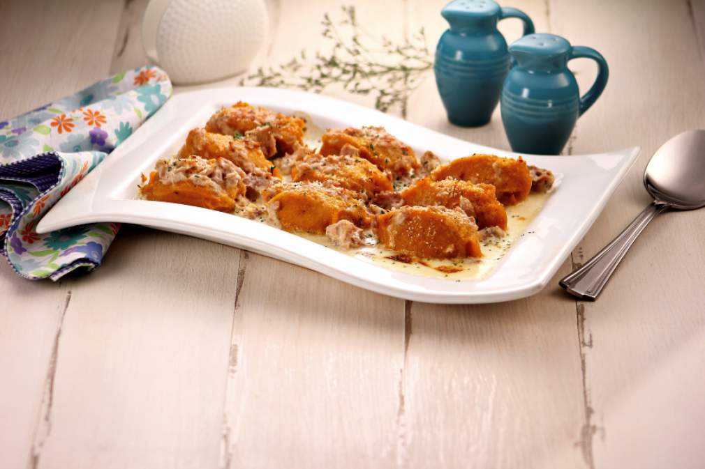 Quibebe de Abóbora Kabotiã com Molho Cremoso de Atum Defumado