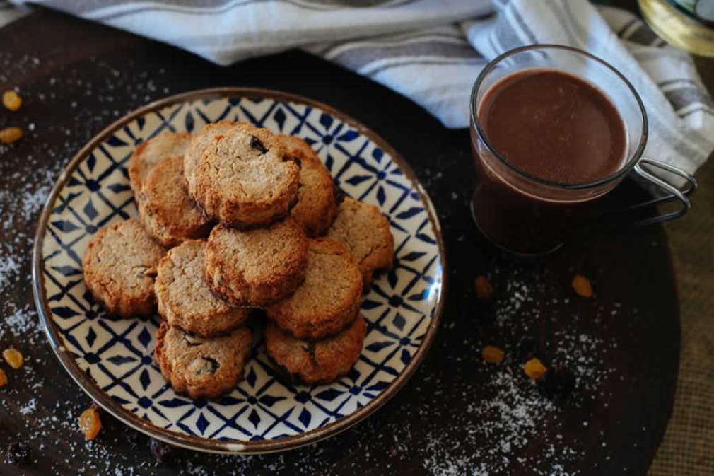 Acrescente o adoçante e as passas e misture. Adicione o leite de coco aos poucos enquanto sova a massa. Se ficar pegajosa, acrescente mais farinha sem glúten.