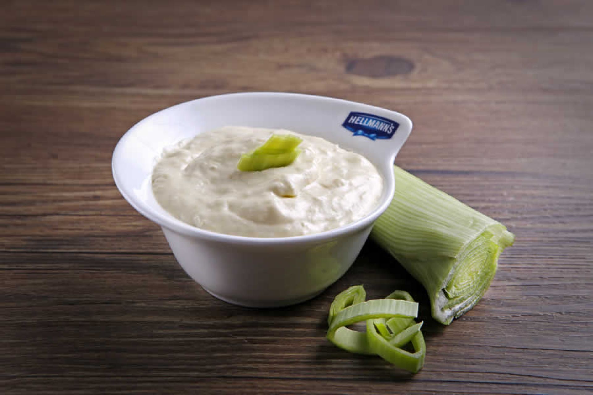 2. Colocar a Maionese Hellmann’s em um liquidificador, processar junto do alho poró que foi refogado.