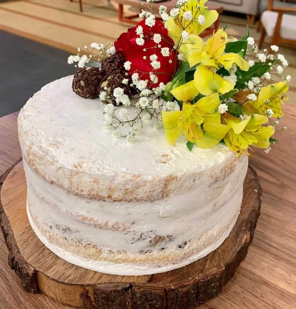 Essa sugestão rústica, que combina dois recheios de sabores sofisticados com bolo de baunilha super fofinho, é ideal para se transformar na grande atração de uma festa aniversário, de um batizado e até de um mini wedding.