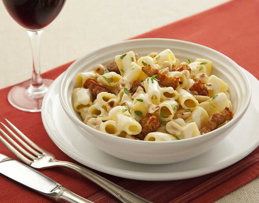Tortiglione ao Molho Cremoso de Avelãs e Pancetta