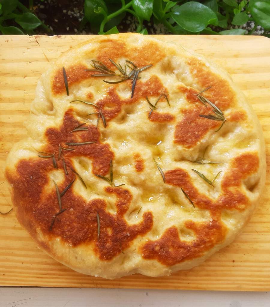 Em uma frigideira coloque bastante azeite, galhos de alecrim, e em fogo baixo coloque uma parte da massa. A cozinhe por 5 minutos, vire-a, coloque um pouco mais de azeite, e cozinhe mais 5 minutos