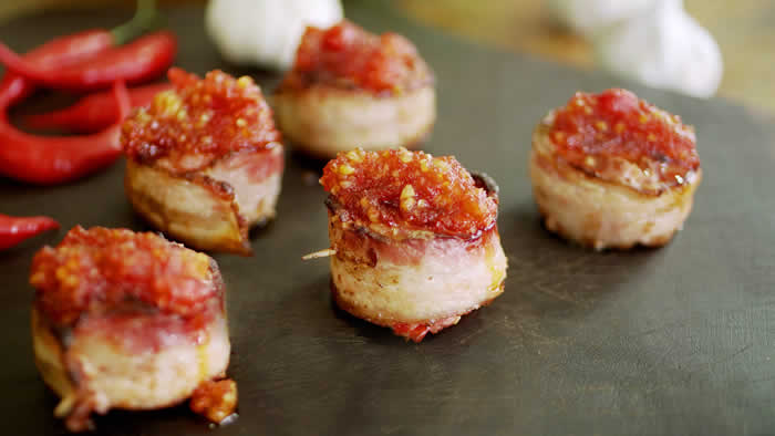 1 – Abra as linguiças, retire toda a tripa, misture tudo e modele como medalhões. Com as fatias do bacon envolva cada medalhão e prenda com palito de dente. Leve tudo para a churrasqueira no braseiro médio (40cm da brasa) e vire quando necessário;