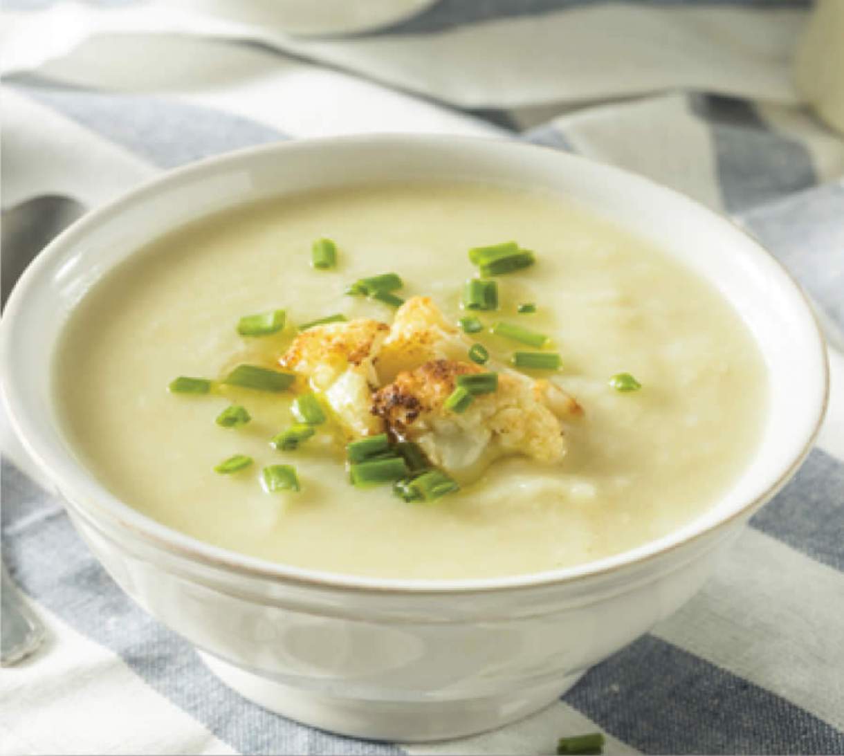 Lavar as folhas de couve-flor e picá-las muito bem. Em uma panela, refogar a cebola no óleo até dourar. Juntar as folhas picadas e o sal. Misturar bem. À parte, misturar a farinha, o leite e a água. Adicionar a mistura ao refogado, mexendo bem até o creme encorpar. Deixe cozinhar. Sirva quente.