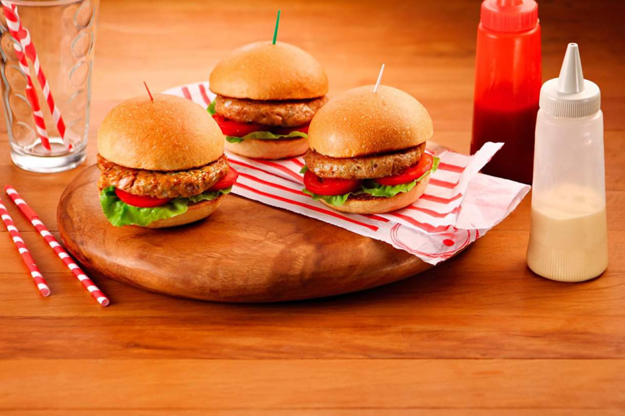 Frite os hambúrgueres em frigideira antiaderente com 1 fio de Azeite Extra Virgem Gomes da Costa. Vire na metade do tempo para que dourem dos dois lados.