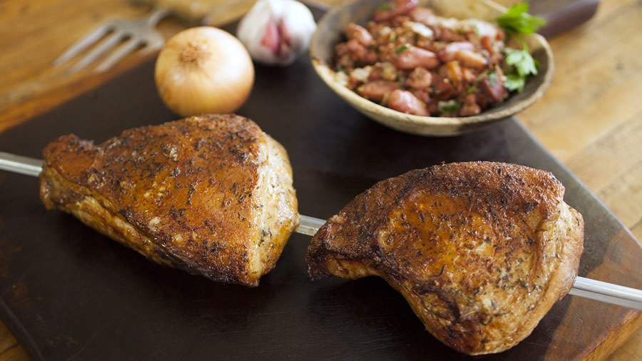 - 2 picanhas suínas temperadas com alho e ervas finas;