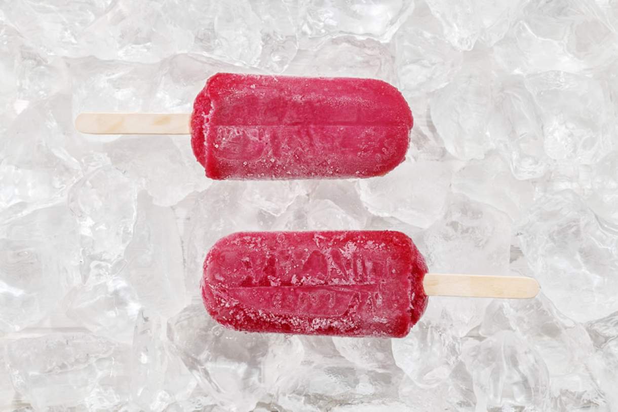 Bata as uvas sem caroços com 400 ml de água filtrada e depois coe. Bata novamente com uma banana nanica em rodelas já congeladas, até virar creme. Adoce com mel, se necessário, e leve para congelar em forminhas de picolé. Coloque nas formas de gelo ou picolé e deixe até endurecer.