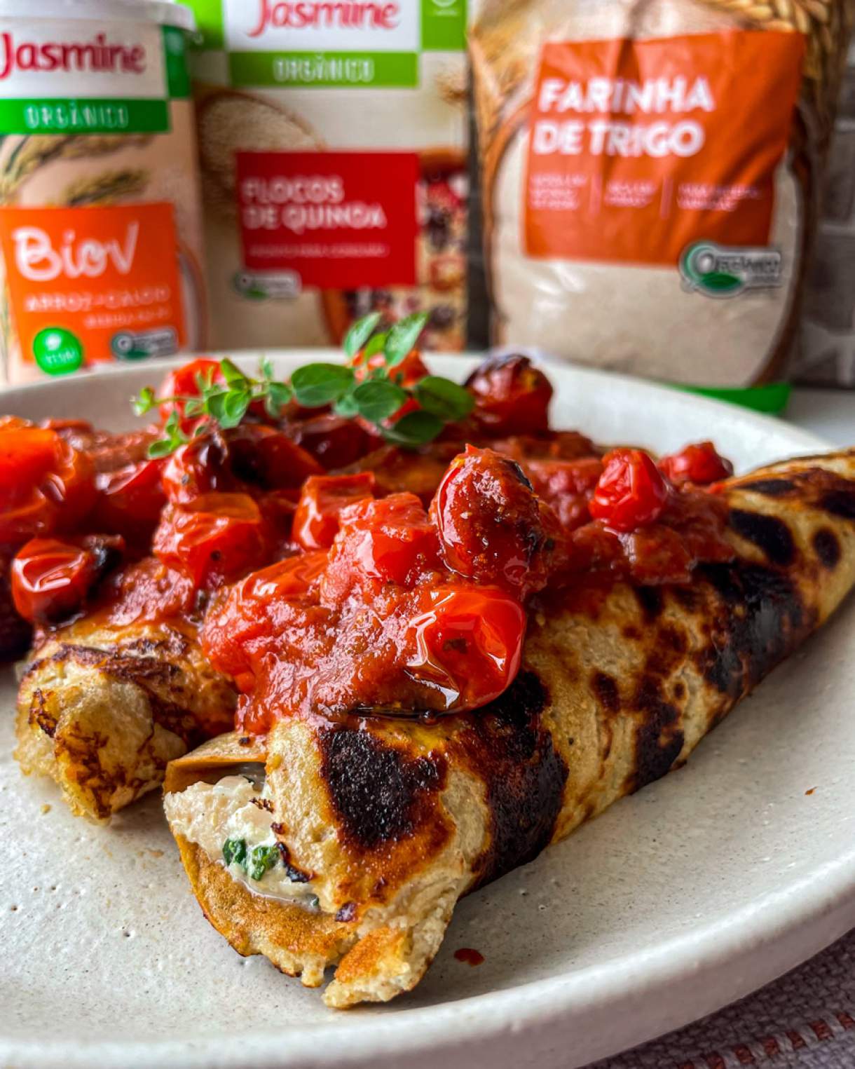 Finalize com um pouco de molho de tomate ou tomates assados da sua preferência.