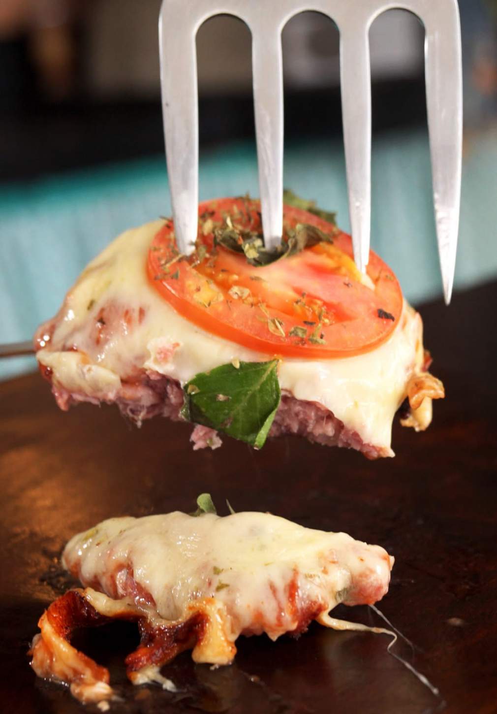 2 - Retire os discos, e em cima do lado assado de cada um pincele o molho de tomate, adicione uma fatiada dobrada de mussarela, uma rodela de tomate, orégano e manjericão, retorne para a grelha para assar o outro lado para servir.