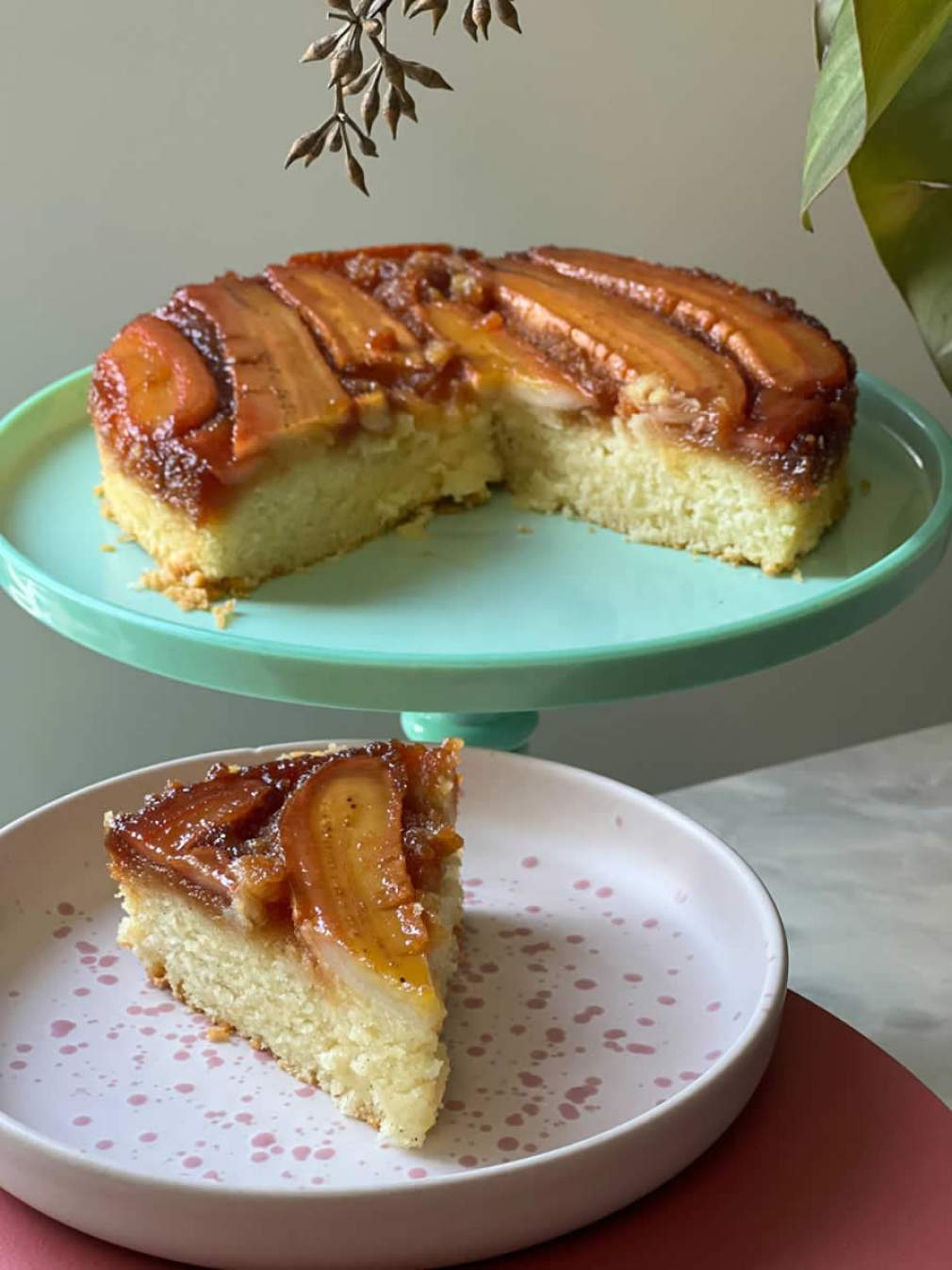 Confeiteira Bruna Rebelo ensina a fazer bolo de banana com cobertura caramelizada