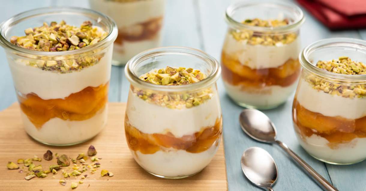 Pavê de Queijo Brie com chocolate branco e calda de damasco seco