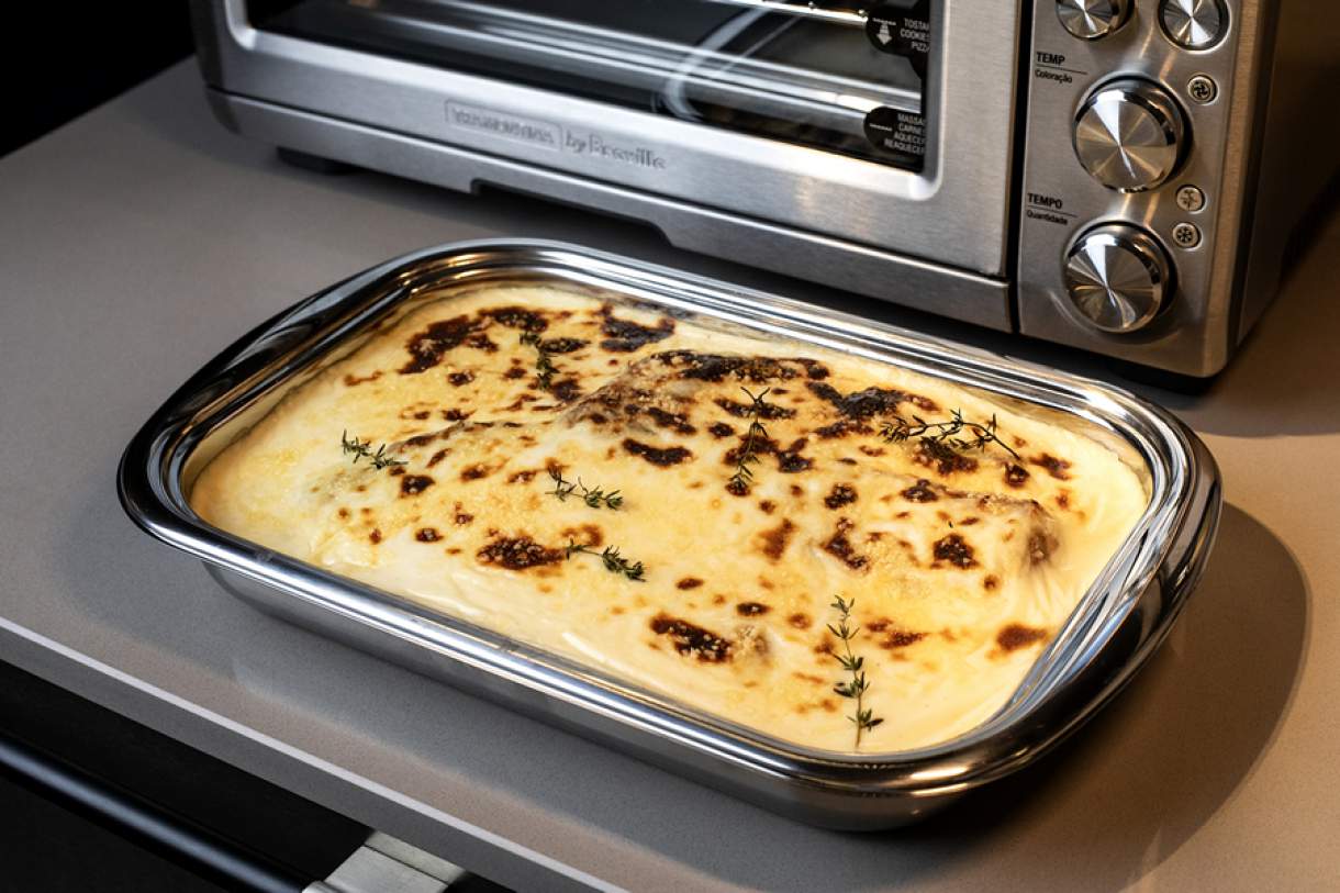 10. Pré-aqueça o forno a 200 ºC e asse por 20 a 30 minutos, ou até que o queijo esteja derretido e dourado