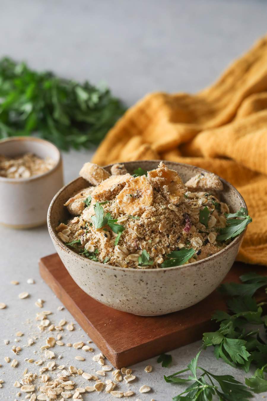 Farofa de aveia em flocos e mix de farinhas com banana-da-terra é tudo o que você precisa