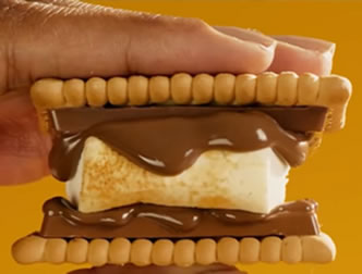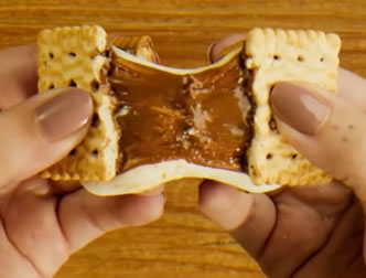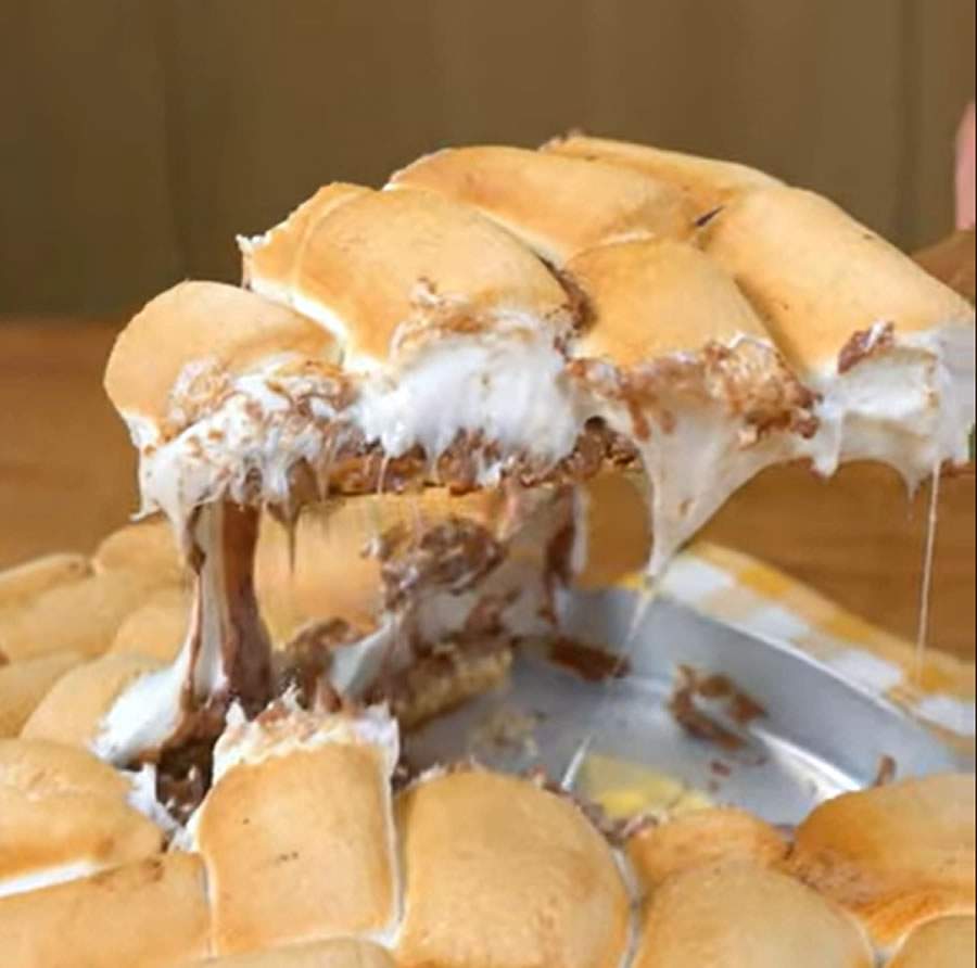 O S'mores é uma deliciosa e clássica receita feita em fogueiras, onde o marshmallow é derretido e inserido como recheio junto com o chocolate, formando um “hambúrguer” de biscoito.