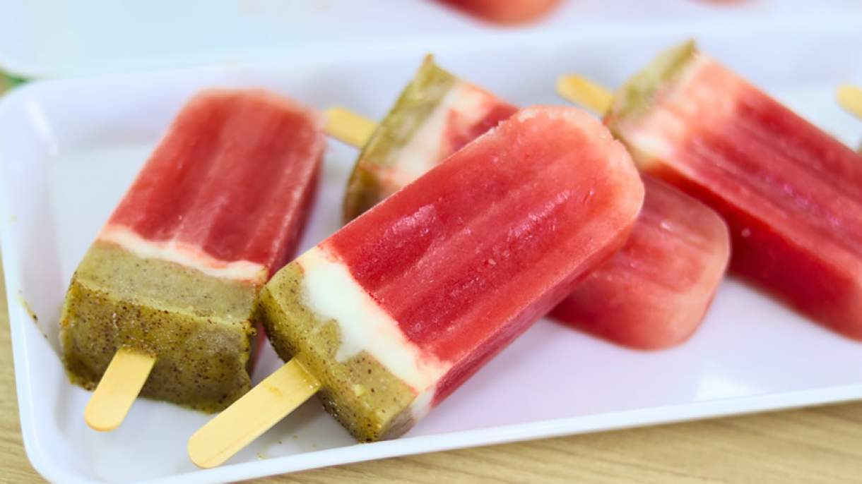 2. Misture o iogurte natural com o açúcar e adicione uma camada sobre os picolés. Leve novamente ao freezer.