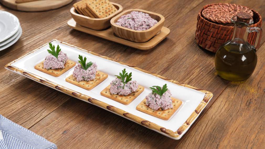 Que tal preparar uma receita levinha e muito fácil de fazer? Leva pouquíssimos ingredientes e é um aperitivo fora do óbvio, que promete agradar a todos os paladares. Já aviso: todos vão querer a receita. Ela é feita com Biscoito Renata Laminado Cracker Fermentação Natural, fica pronta em 20 minutos e rende 12 porções.