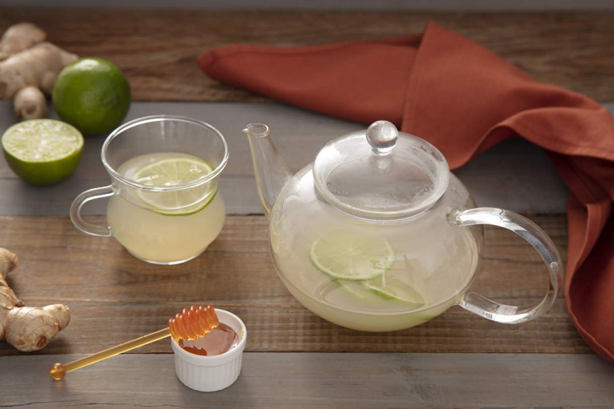 1.Em uma panela, coloque o gengibre, o mel e o limão e aqueça brevemente.
