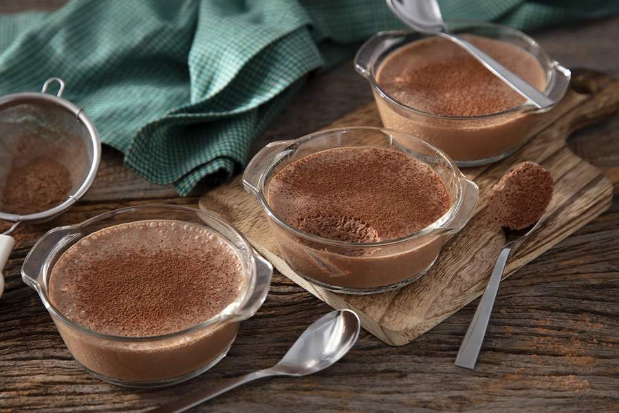 5. Transfira a mousse para taças individuais e leve à geladeira por cerca de 2 horas ou até a mousse ficar firme.