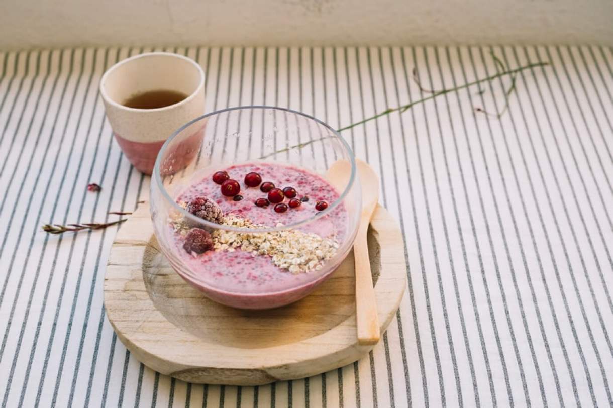 Overnight de Aveia com Frutas Vermelhas e Crocante de Chia & Linhaça