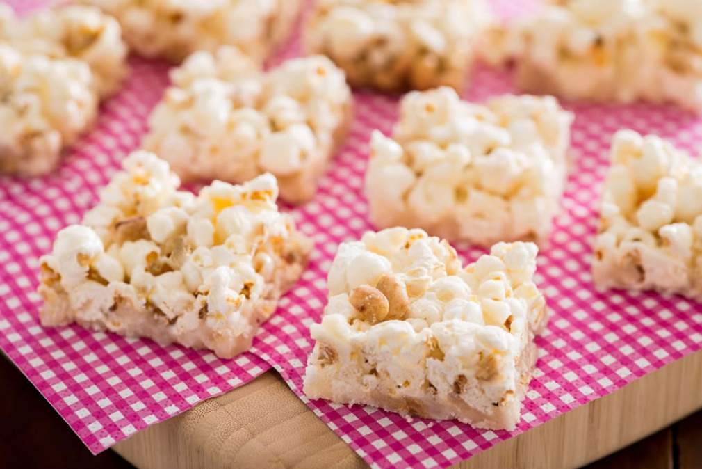 Pegue uma forma de 28 x 18 cm, espalhe a pipoca e pressione com um rolo de macarrão. Deixe esfriar e corte em barrinhas ou em quadrados sua receita de pipoca gourmet com amendoim. E a receita está pronta!